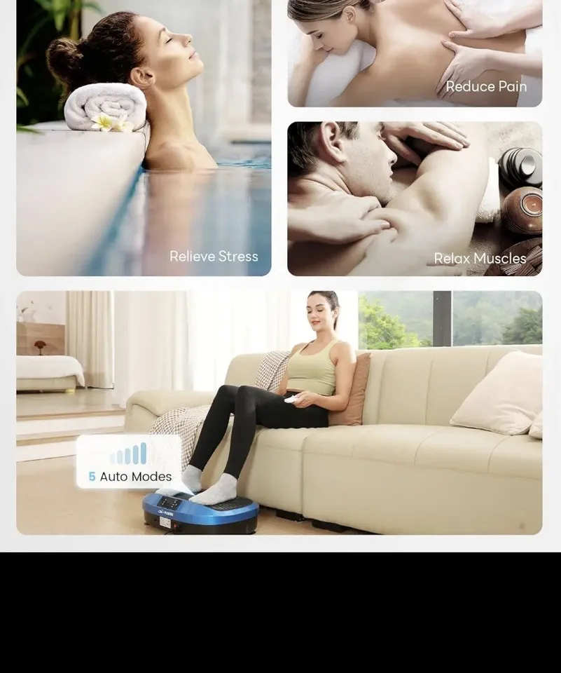 Stepping On This Vibration Therapy Machine Stimulate Muscle Contraction And Therefore Improving Strength And Functions, Increase blood flow to muscles and joints, promote relaxation and flexibility.